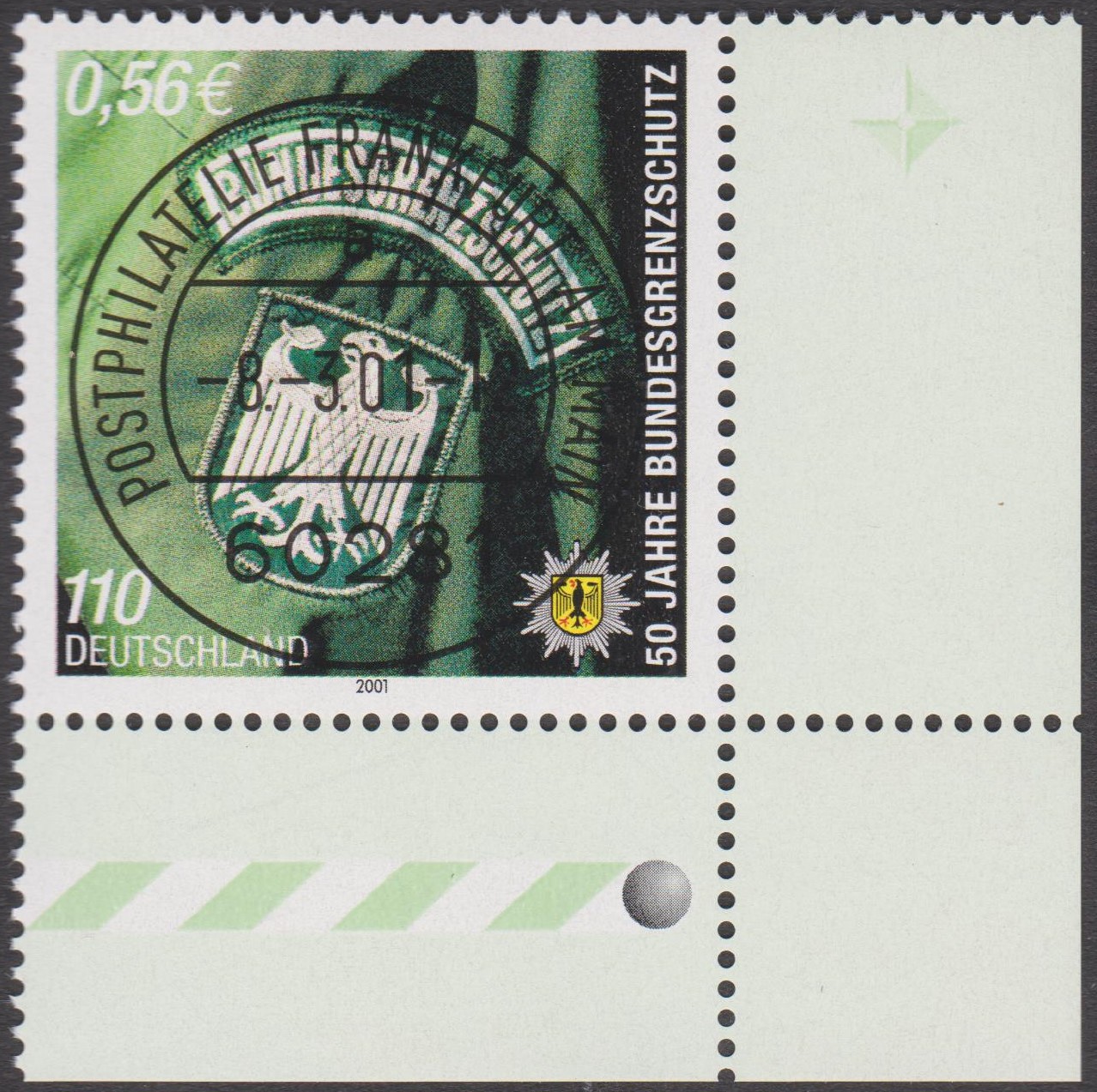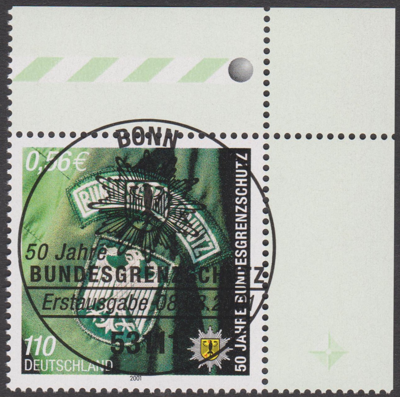 Am 08.03.2001 erschien aus Anlass "50 Jahre Bundesgrenzschutz" ein Sonderpostwertzeichen, Bund MiNr. 2175, hier auf ETB 15/2001: