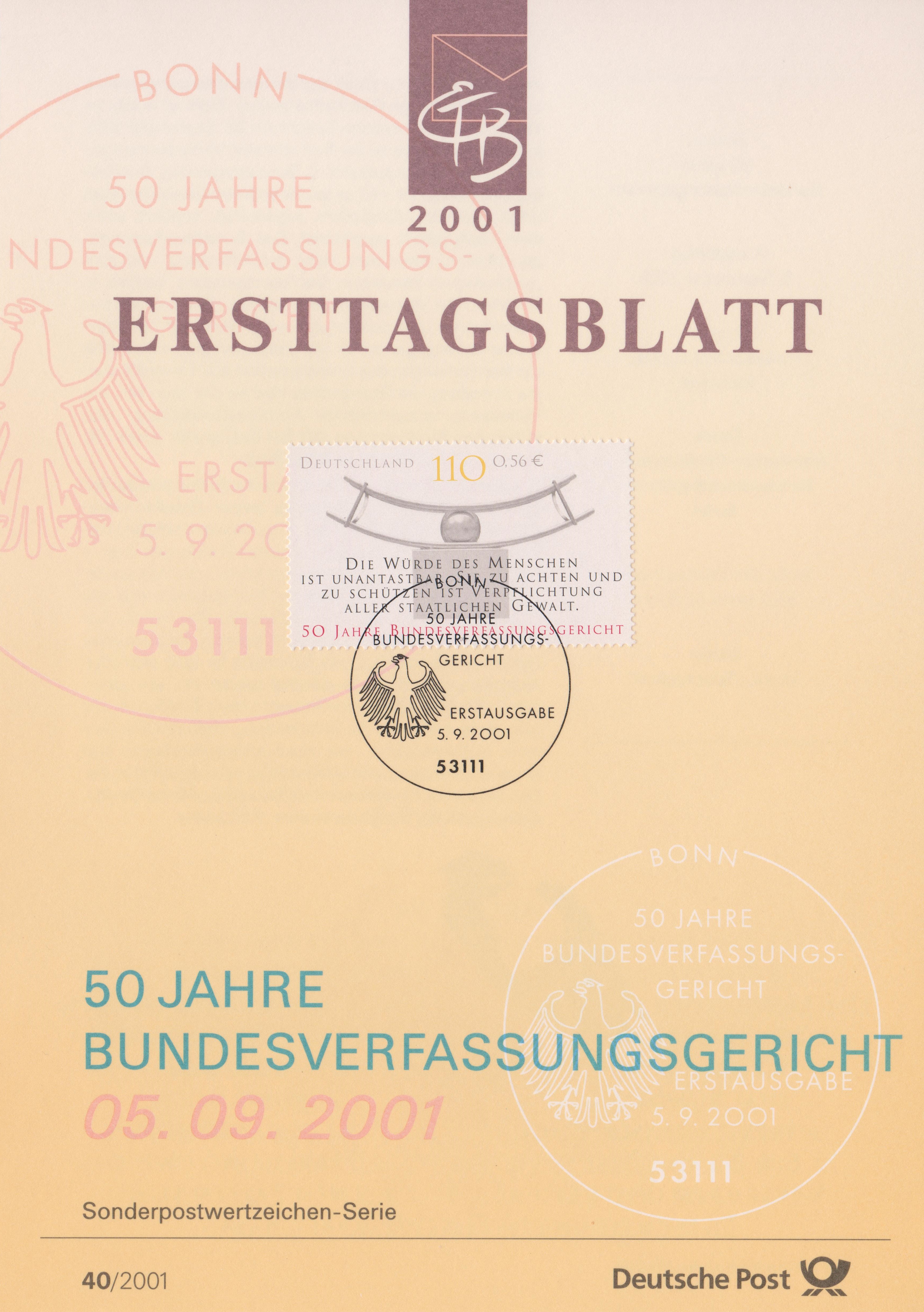 Bund MiNr. 2214 zeigt "Die Gerechtigkeit", eine Plastik im Casino des Bundesverfassungsgericht in Karlsruhe: