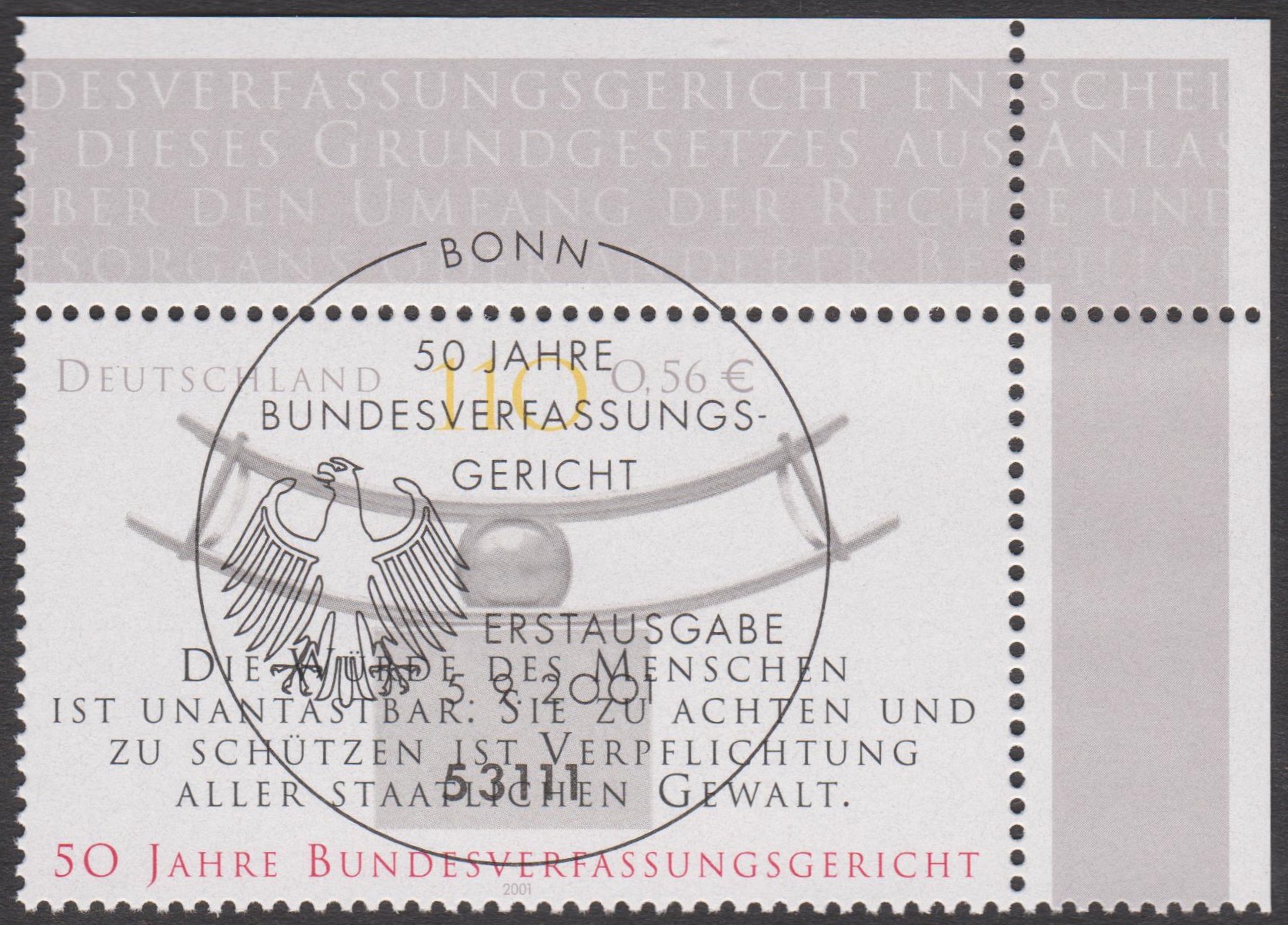 Rechte obere Bogenecke der Bund MiNr. 2214 mit ESST BONN: