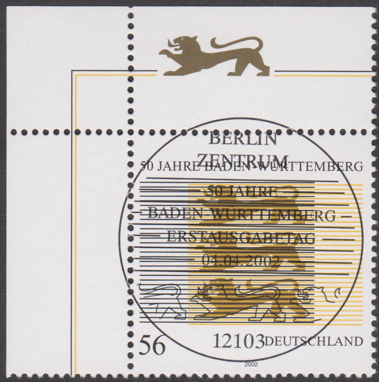 ETB 13/2002 zeigt die Sondermarke "50 JAHRE BADEN-WÜRTTEMBERG" mit EST BONN: