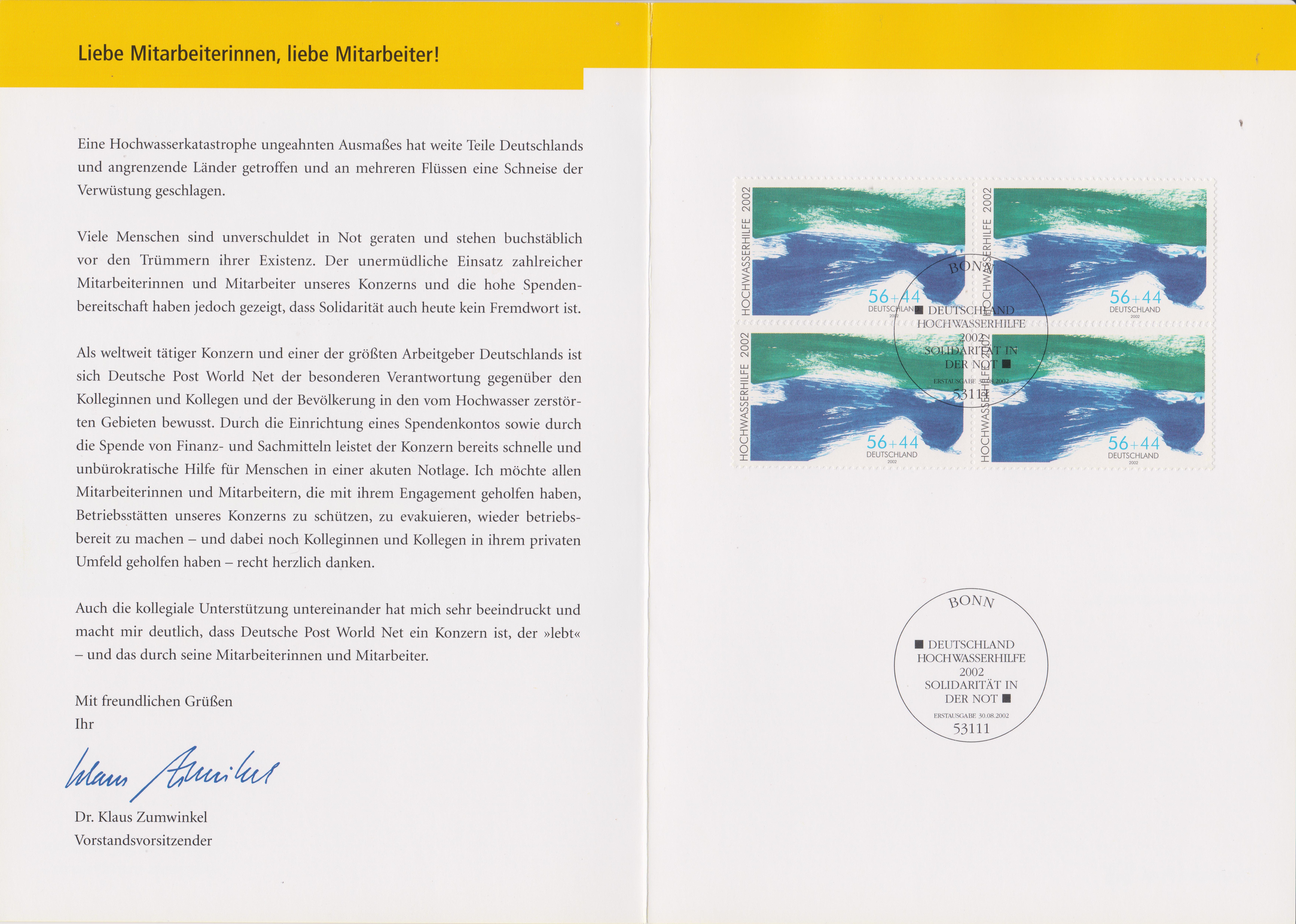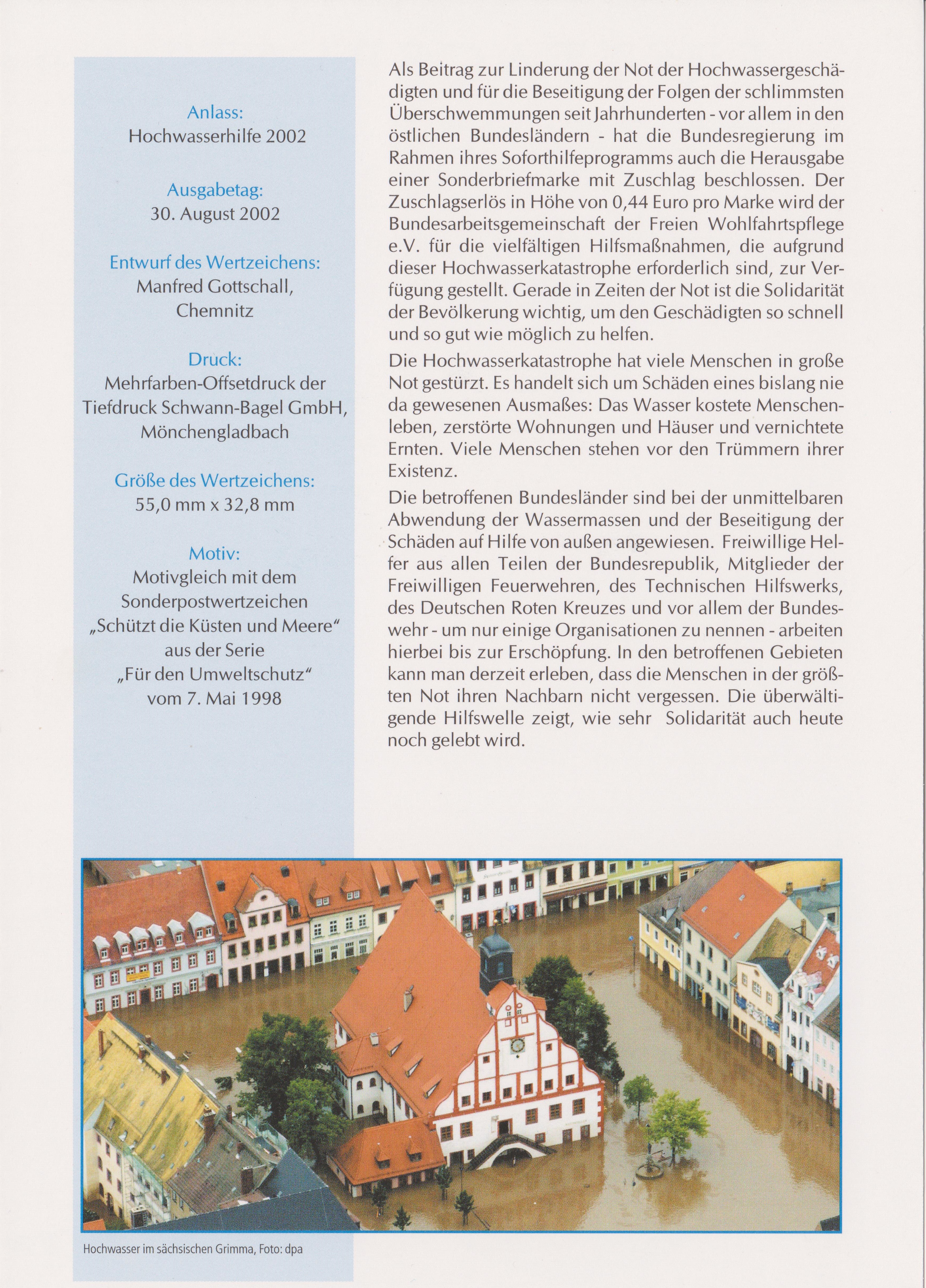 Am 30.08.2002 wurde dieses ETB 33 s/2002 zum Thema "Hochwasserhilfe" sufgelegt:
