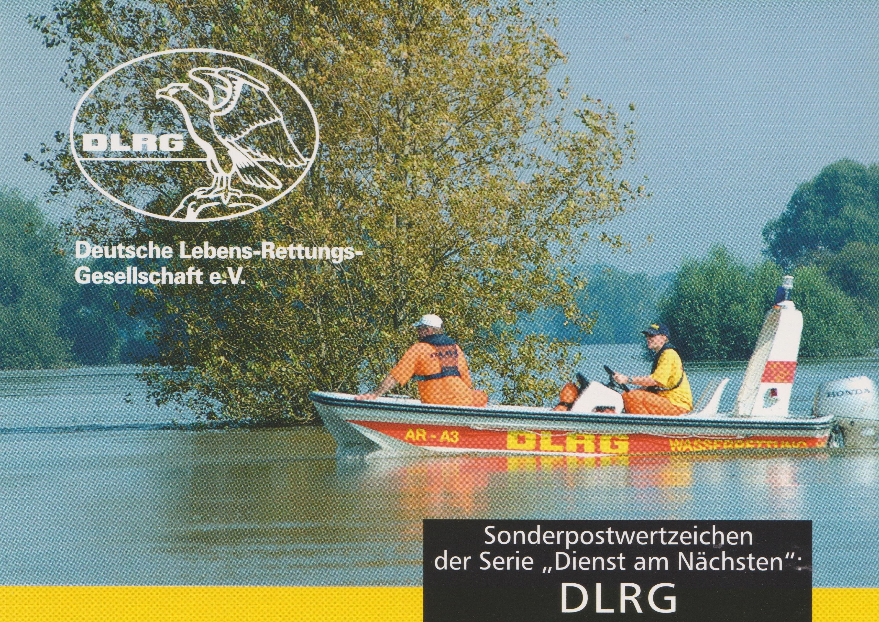Bund MiNr. 2367 erschien zu Ehren der "Deutsche Lebensrettungsgesellschaft - DLRG", hier auf einem Faltblatt "Erlebnis Briefmarken 059" mit einer limitierten Auflage von 3500 Exemplaren: