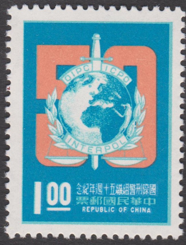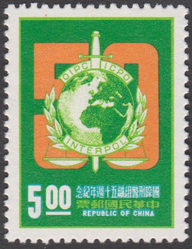 In Taiwan erschien am 11.09.1973 zum Jubiläum "50 Jahre Interpol" dieser Satz von 3 Postwertzeichen, MiNr. 978/980: