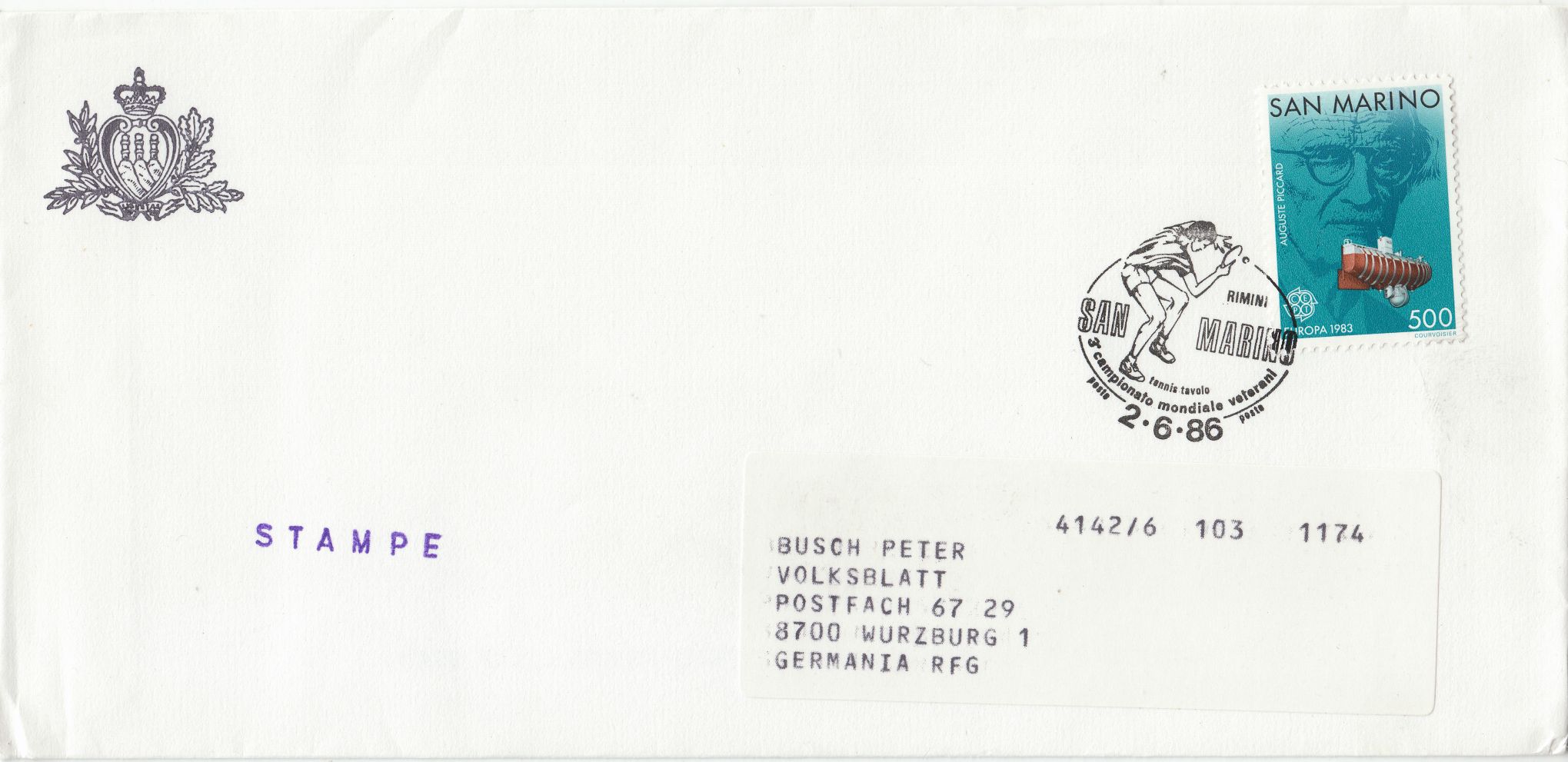 Die Europamarke 1983 der Wertstufe zu 500 Lire aus San Marino zeigt ein solches BATHYSCAPH: