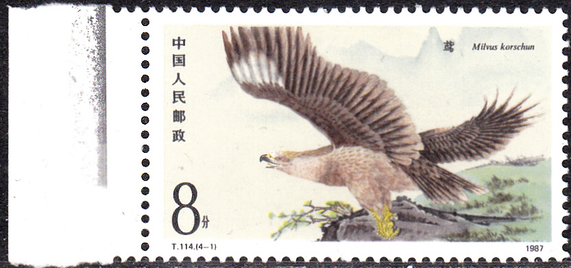 Auf dieser Marke aus der Volksrepublik China (MiNr 2105) wird die Unterart Celebes-Schwarzmilan (Milvus migrans affinis) gezeigt.