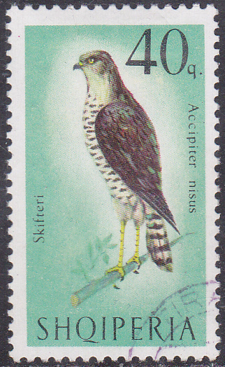 Auf dieser Marke aus Albanien (MiNr 1127) wird ein Sperber (Accipiter nisus) gezeigt.