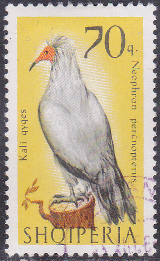 Dieser Marke aus Albanien (MiNr 1129) aus einer Serie "Greifvögel" zeigt eine Schmutzgeier (Neophron percnopterus).