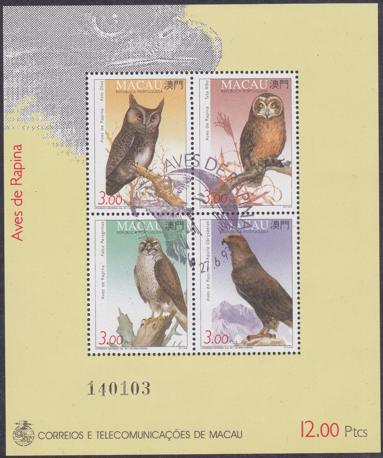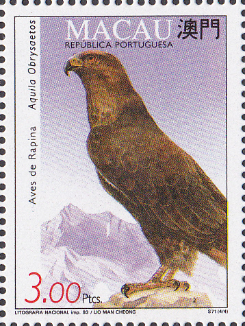 Au dieser Marke aus Macau (MiNr 730) sehen wir einen Steinadler (Aquila chrysaetos).
