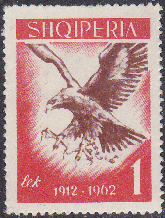 Diese Marke aus Albanien zu "50 Jahre Unabhängigkeit" (MiNr 709) zeigt im Markenbild einen Steinadler (Aquila chrysaetos).