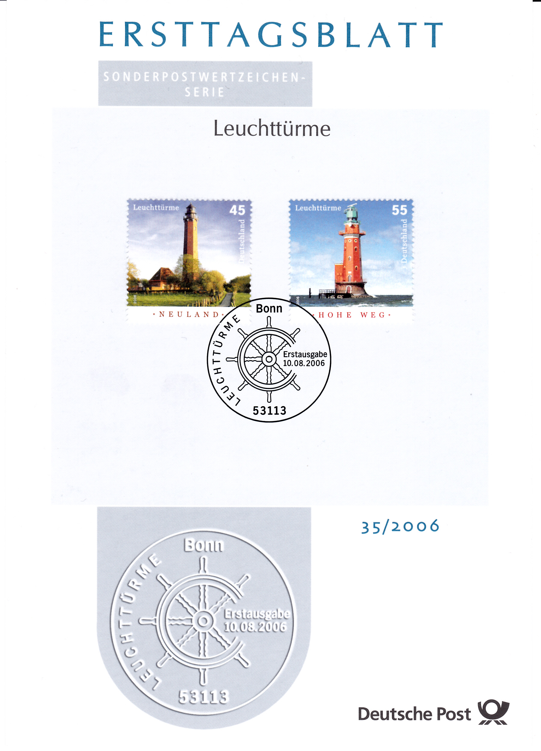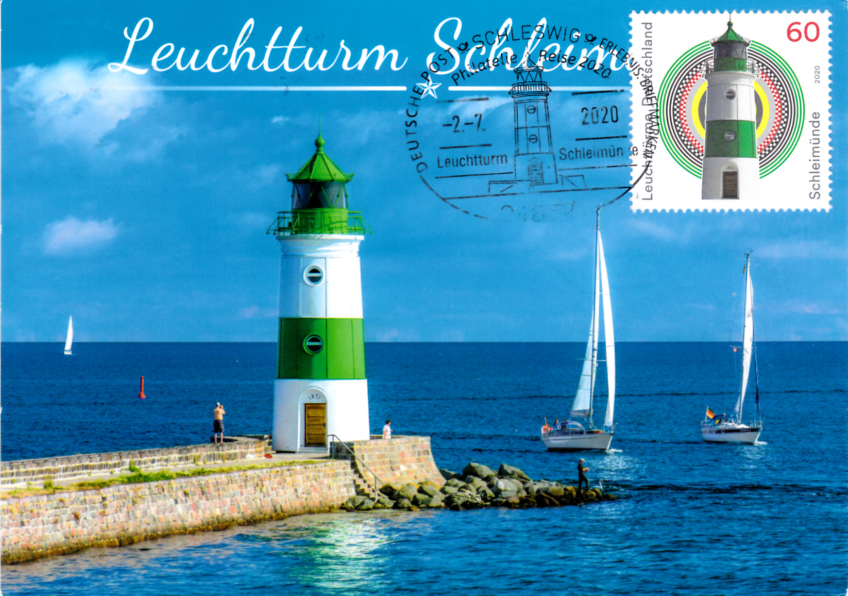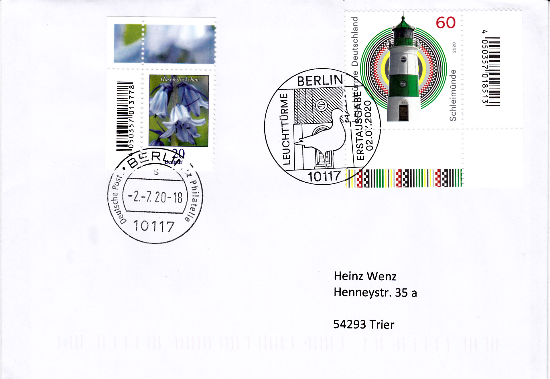 Auf diesem Brief ist die Marke mit dem Leuchtturm Schleimünde mit dem Ersttagsonderstempel Berlin entwertet, die Marke zu 20 Cent wurde mit einem Tagesstempel der Stempelstelle Berlin entwertet.´