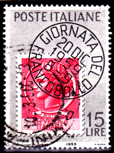 Am 20.12.1959 ist in Italien die erste Marke zum Tag der Briefmarke erschienen (MiNr 1057). Auf ihr sind MiNr. 889 oder 971 von Italien abgebildet, die mit einem Stempel mit der Inschrift "Giornata del Francobollo" (Tag der Briefmarke) gestempelt ist.