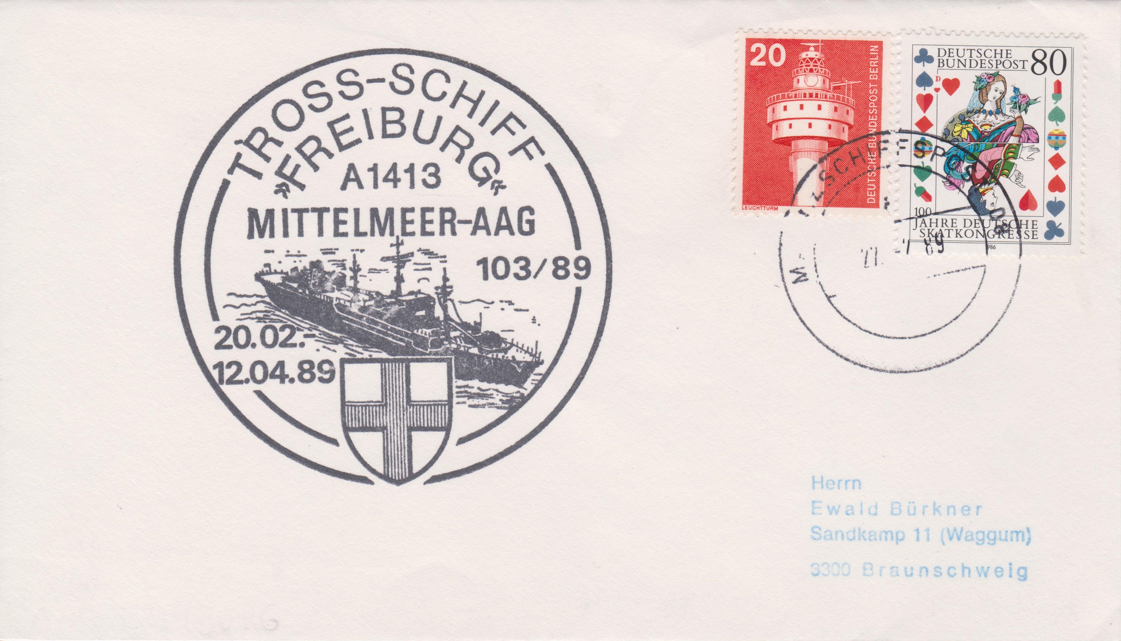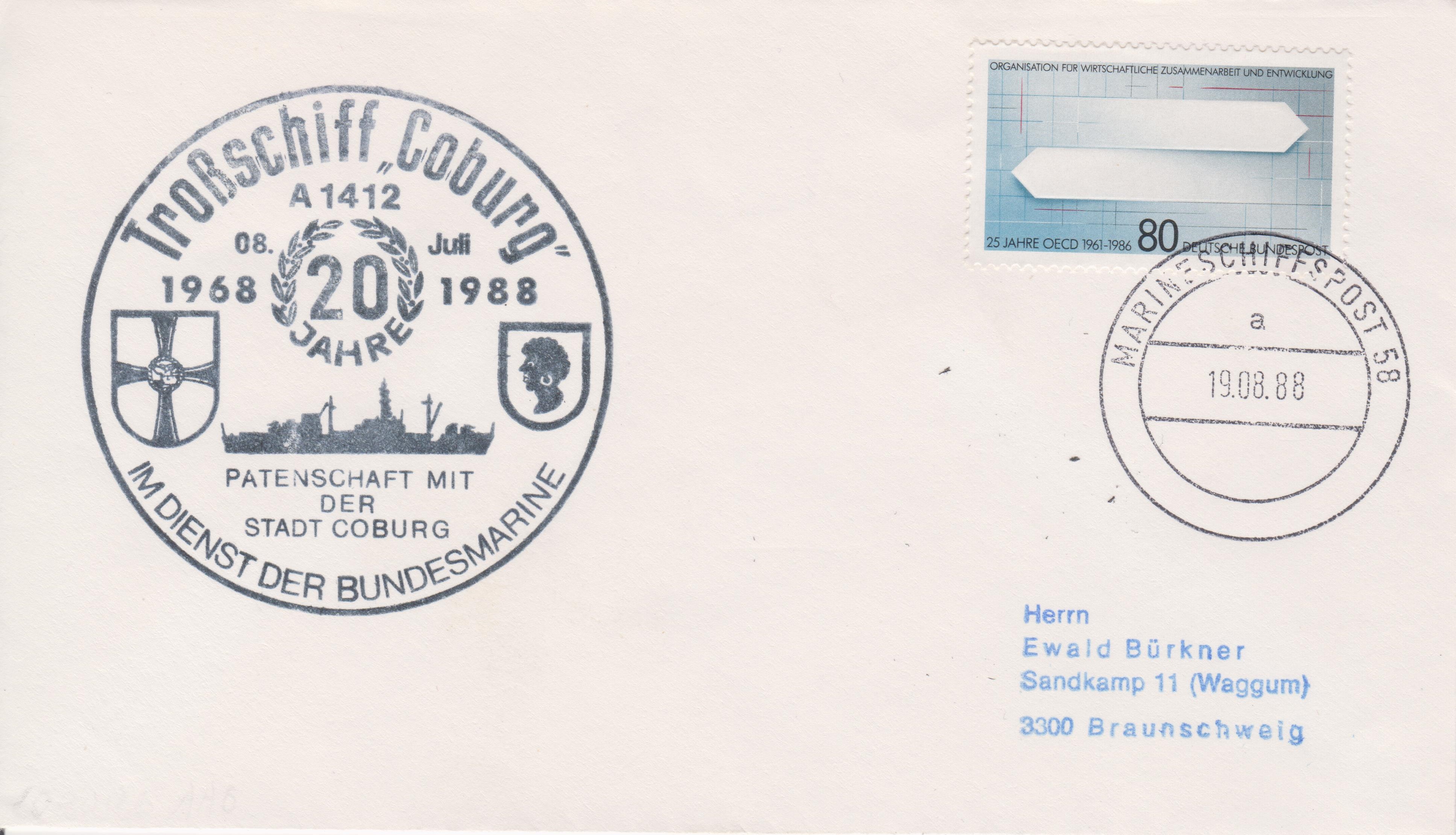 Das Troßschiff "Spessart" vom 1. Versorgungsgeschwader nahm am 25.06.1982 an der Kieler Woche teil, was dieser Beleg dokumentiert: