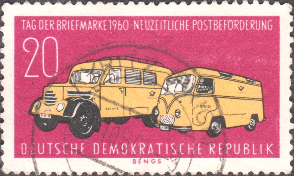 Die Motive für die Markenausgabe für den Tag der Briefmarke 1960 sind "Postkraftwagen" sowie "Bahnpostwagen". Beide Marken erschienen am 6. Oktober 1960.