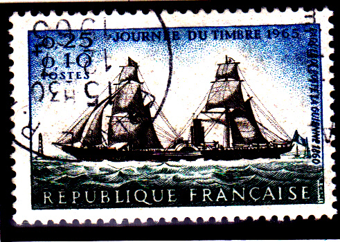 Am 27.3.1965 erschien in Frankreich eine Marke mit Zuschlag zum Tag der Briefmarke 1965 (MiNr 1505). Die Marke zeigt das Dampfsegelschiff „Guienne“ (1860) im Bild.
