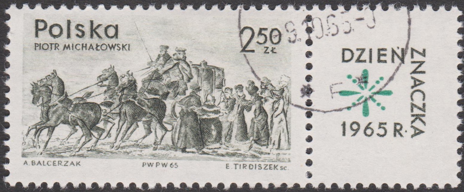 Zum Tag der Briefmarke 1965 erschienen in Polen am 9.10.1965 zwei Sonderbriefmarken (MiNr 1621/1622) mit Werken von Piotr Graf Michałowski (1800 - 1855)