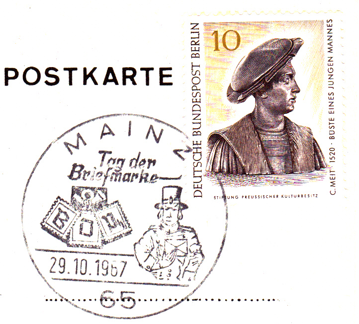 Sonderstempel zum Tag der Briefmarke 1967 vom 29.10.1967 aus Mainz.