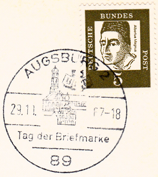 Sonderstempel zum Tag der Briefmarke 1967 vom 29.10.1967 aus Augsburg.
