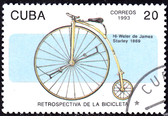 Auf dieser Marke aus Kuba (MiNr 3673) ist das Hochrad "Ariel" von James Starley abgebildet.