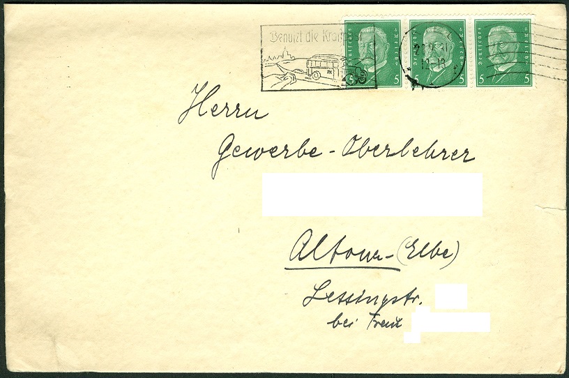 Das Porto für einen Brief betrug 20 Pf, der Luftpostzuschlag für Inlandsluftpost betrug 5 Pf!
