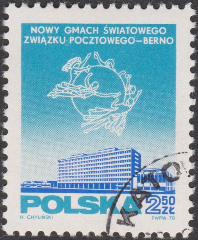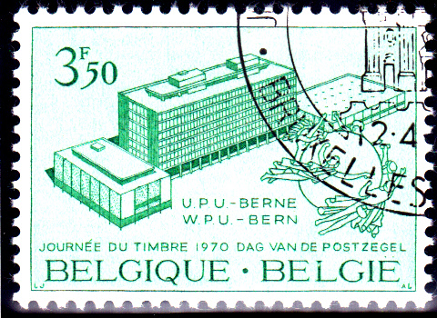 Zum Tag der Briefmarke 1970 verausgabte die belgische Post am 12.4.1970 eine Sondermarke (MiNr 1586) mit der Abbildung des neuen Verwaltungsgebäudes des Weltpostvereins (UPU) in Bern.