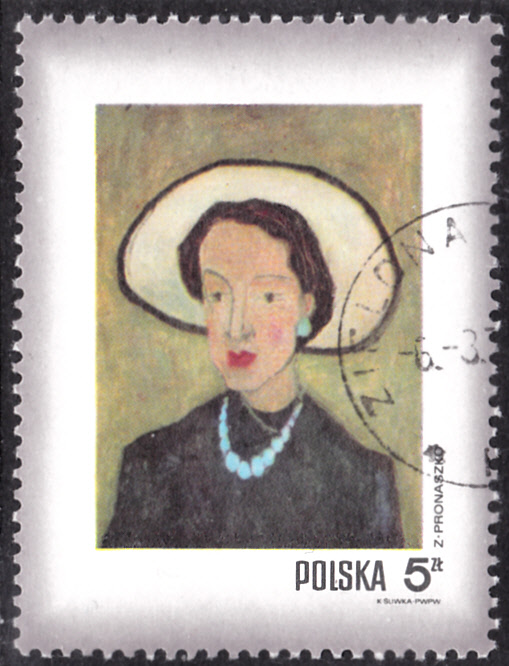 Es folgt die nächste Marke der Serie (MiNr 2116) mit "Die Frau im weißen Hut" nach einem Gemälde von Zbigniew Pronaszko (1885-1958).