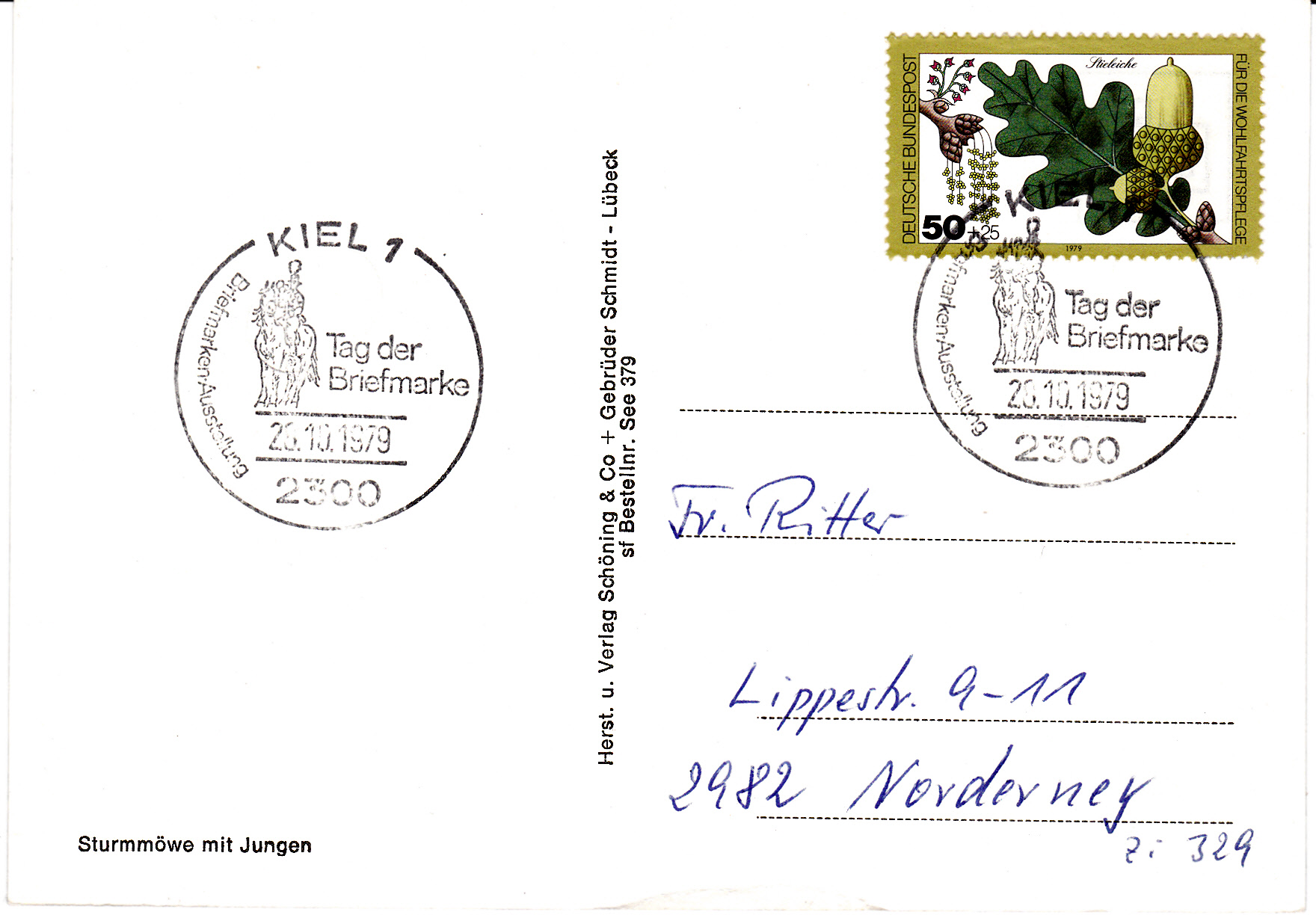 Dieser Sonderstempel zum Tag der Briefmarke 1979 wurde am 28.10.1979 in Kiel eingesetzt.