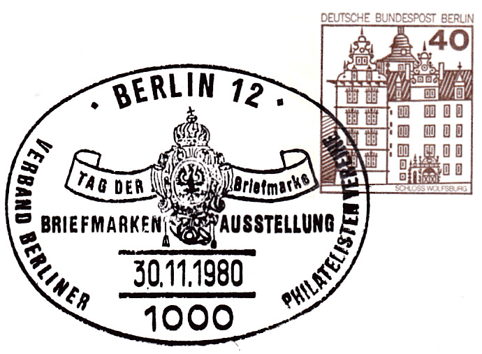Ganzsachenumschlag zum Tag der Briefmarke 1980 des Verbandes Berliner Philatelisten Vereine e.V. mit dem dazu gehörenden Sonderstempel aus Berlin 12.
