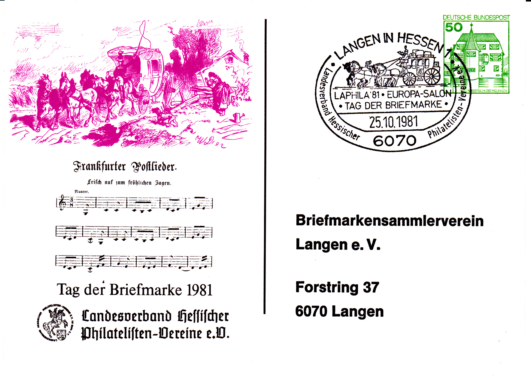 MiNr. 1112 den Sammlern vorgestellt. Hier ein Exemplar (von 31 825 000 Stück Gesamtauflage) auf einer Postkarte, auf der für die postgeschichtlich interessierten Preußensammler Postuniformen aus der Zeit um 1855 dargestellt werden. Ob es nur ein Bildausschnitt der Lithographie von Ludwig Burger ist?