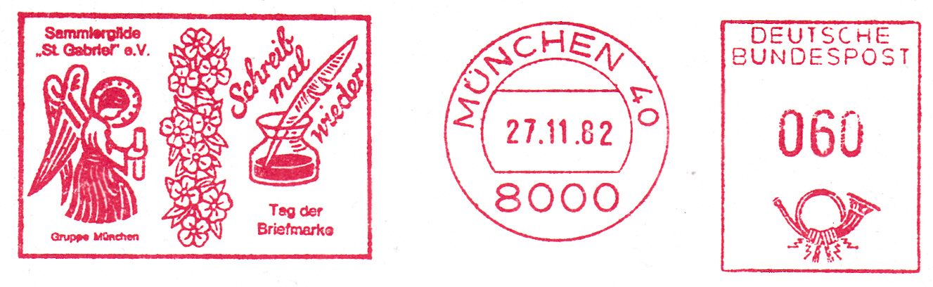 Die DPhJ hatte für den Tag der Briefmarke 1982 auch einen Werbeeinsatz für ihren Absenderentwerter für Massendrucksachen, wie dieses Belegexemplar beweist.