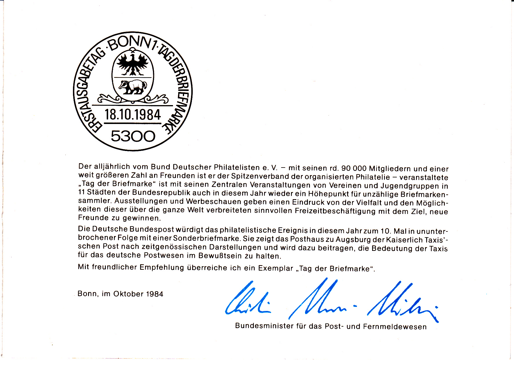 Was lag näher, als auf dem vom Bundesministerium für das Post- und Fernmeldewesen herausgegebenen Faltblatt "Unsere Jahresvorschau 1984.", das als Titelbild eine Abbildung dieses Postwertzeichens verwendete, eine solche Marke zu verkleben und so einen interessanten FDC zu produzieren:
