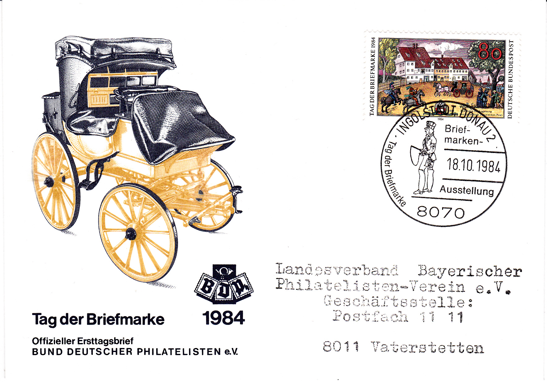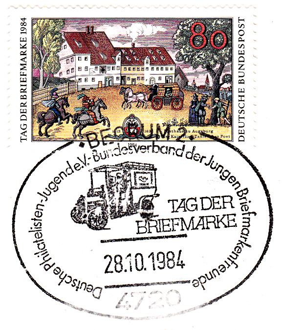 Wie von Heinz bereits vorgestellt gab es am Ersttag der Marke zum TdB 1986 in Ingolstadt einen Sonderstempel mit passendem Motiv.