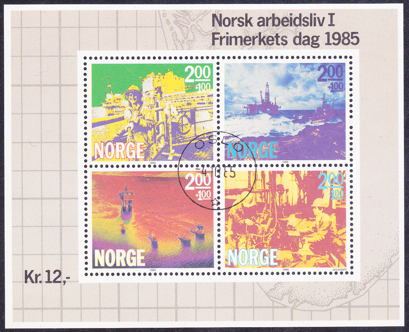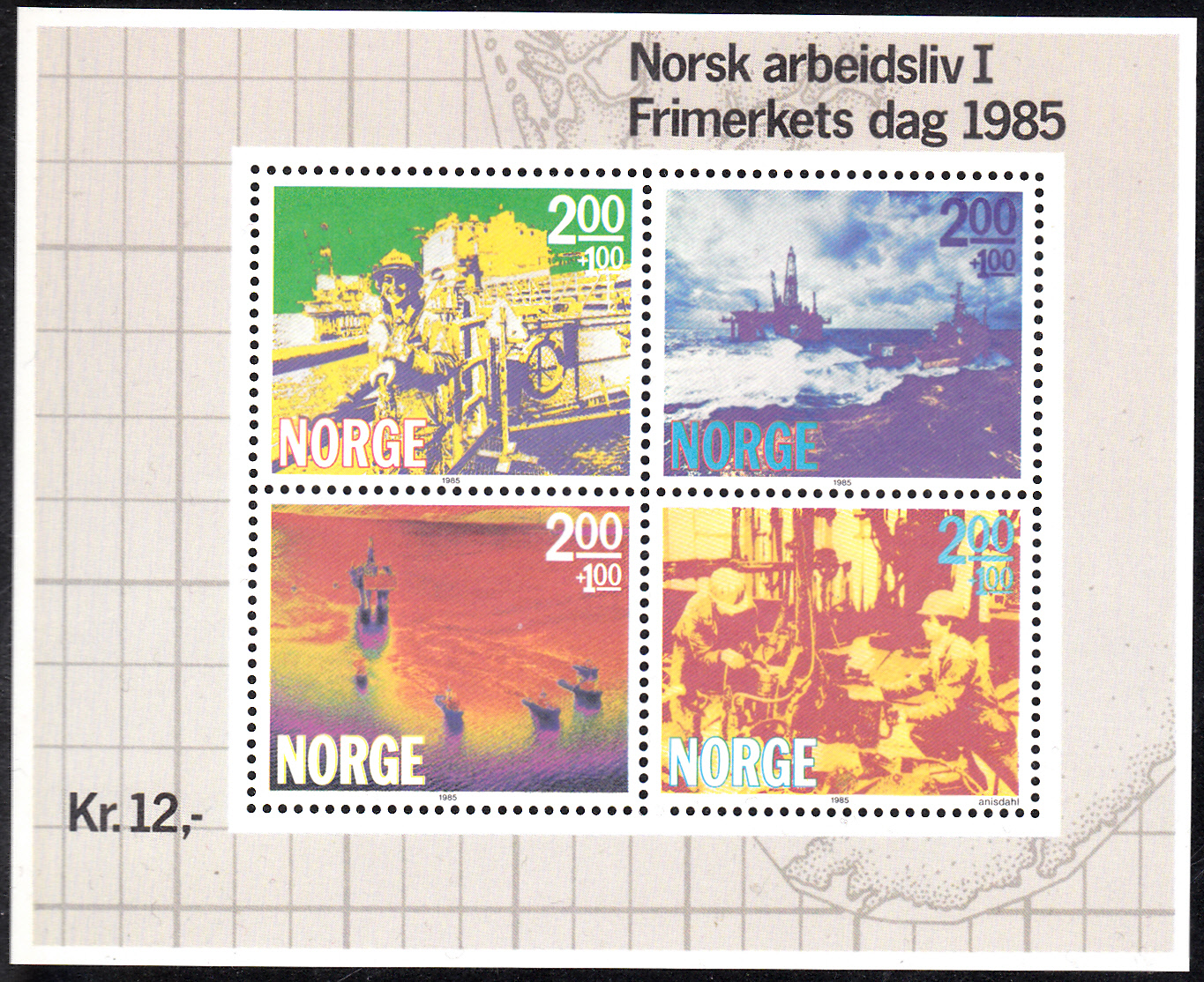 In Norwegen erschien zum Tag der Briefmarke 1985 ein Block (MiNr Block 5) mit vier Marken (MiNr 930 bis 933) mit Abbildungen zum Thema "Das norwegische Berufsleben I - Die Off-shore-Industrie".