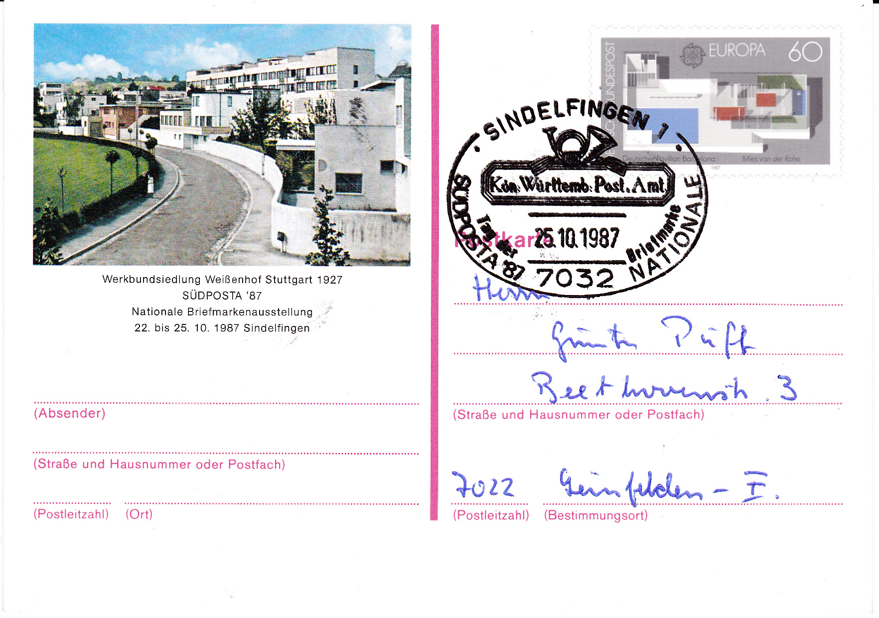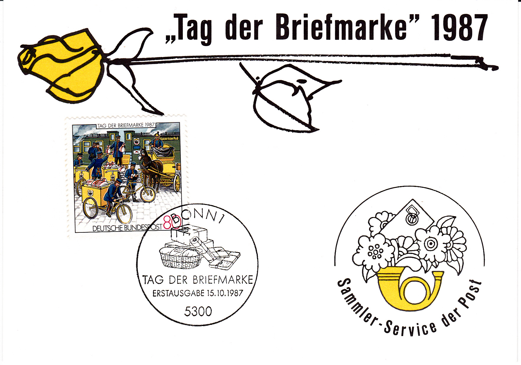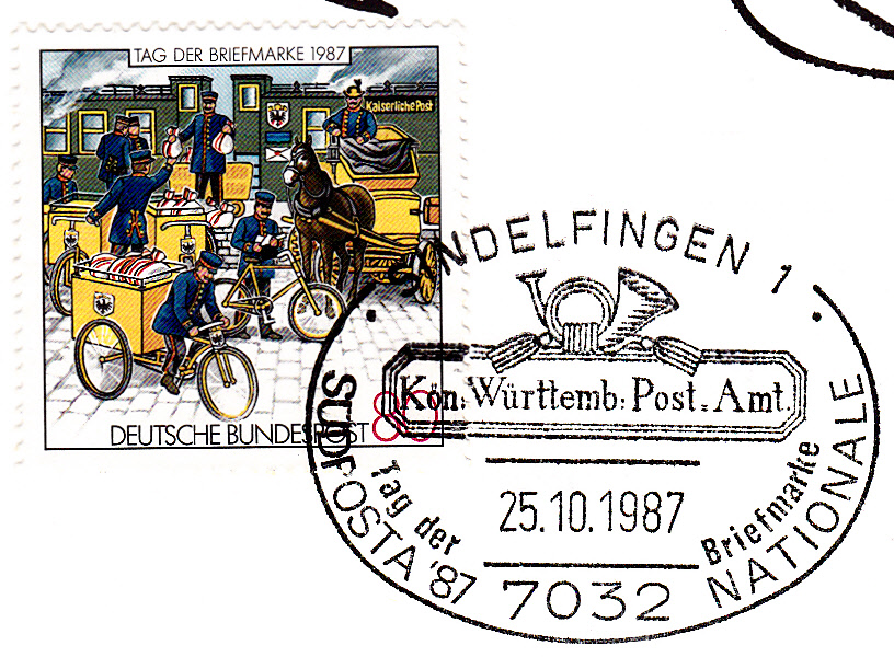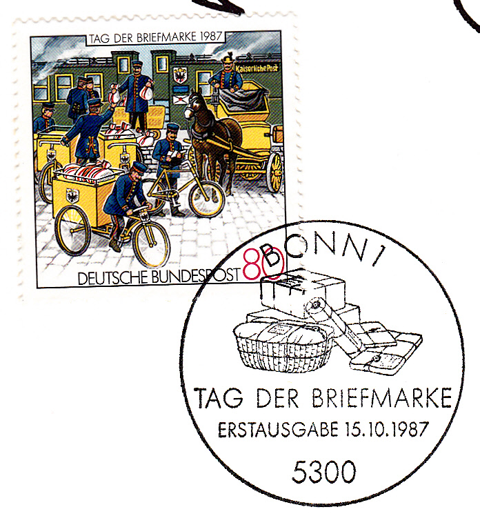 In der Klappkarte des Bundesministers für das Post- und Fernmeldewesen zum 41.Bundestag des BDPh e.V. und zum 88. Deutschen Philatelistentag in Koblenz wurde die Marke zum Tag der Briefmarke als waagerechtes Paar verklebt und mit dem Ersttagsonderstempel Bonn gestempelt.