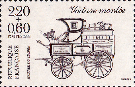 In Frankreich erschien am 12.3.1988 eine Marke zum Tag der Briefmarke 1988 mit der Abbildung einer Postkutsche. Die Marke ist im Bogen (MiNr 2662 A a) in der Farbe dunkelpurpurviolett auf weißviolett mit der Zähnung K 12 3/4 und im Markenheftchen in der Farbe (MiNr 2662 C b) schwarzlilabraun auf weißbraun Papier in der Zähnung K 13 erschienen.