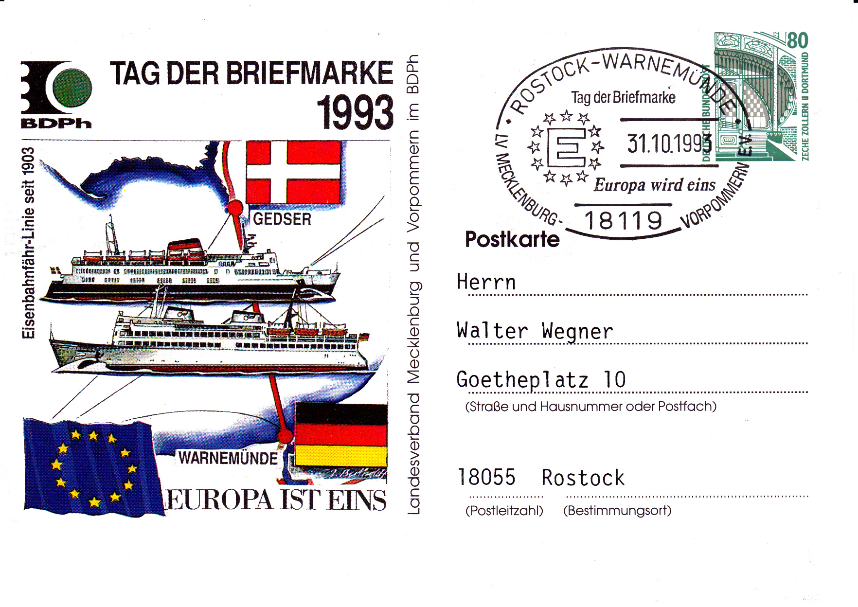 Der Tag der Briefmarke 1993 wurde in Deutschland am 31.10.1993 mit Veranstaltungen gefeiert. Das zentrale Thema lautete "Europa wird eins".