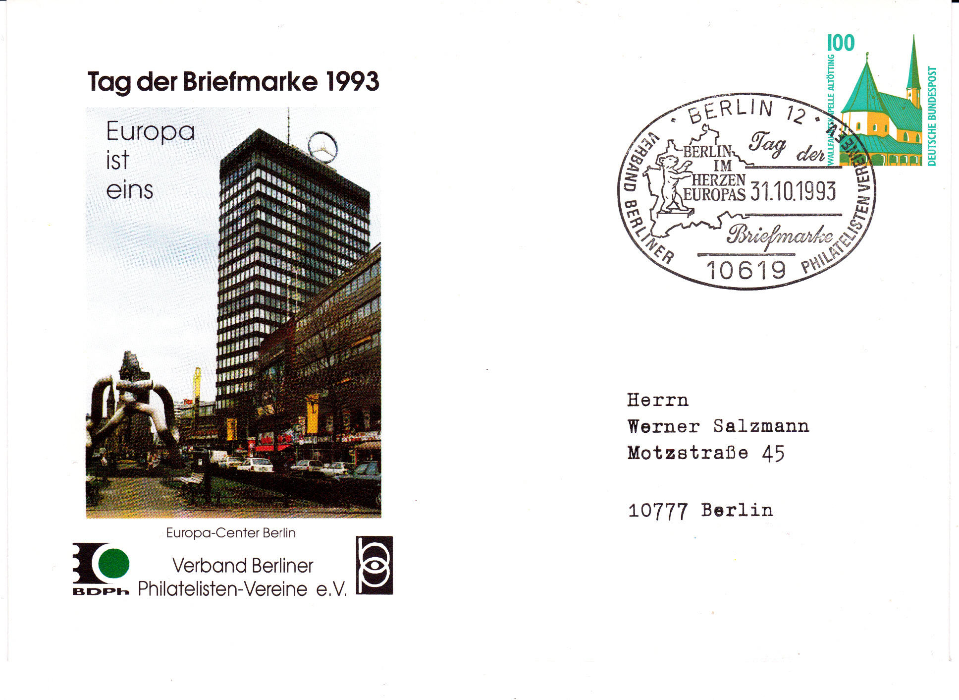 Der Tag der Briefmarke 1993 wurde in Deutschland am 31.10.1993 mit Veranstaltungen gefeiert. Das zentrale Thema lautete "Europa wird eins".