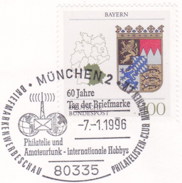 Am 7.1.1996 wurde in München dieser Sonderstempel "60 Jahre Tag der Briefmarke" bei einer Briefmarkenschau eingesetzt.
