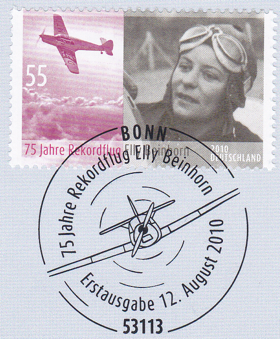 Auf dieser Marke aus Berlin (MiNr 594) ist eine Messerschmitt Bf 108 abgebildet.
