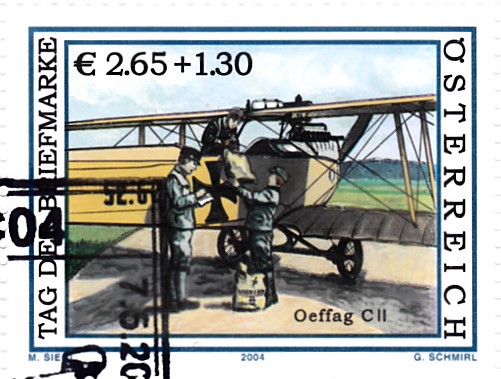 In Österreich ist am 7.5.2004 eine Marke (MiNr 2482) zum Tag der Briefmarke 2004 erschienen. Sie zeigt eine Darstellung zur Postbeförderung mit dem Militärflugzeug Oeffag C II aus dem Jahre 1915.