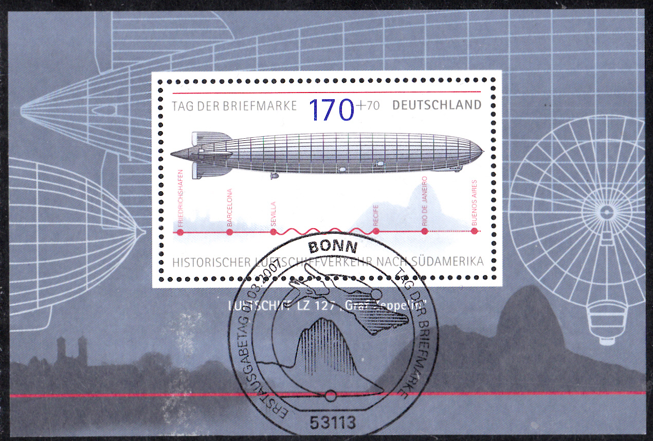 Zum Tag der Briefmarke 2007 erschien bei der Deutschen Post AG am 1. März 2007 eine Blockausgabe zum Thema "Historischer Luftschiffverkehr nach Südamerika" (MiNr Block 69). Die Blockmarke (MiNr 2589) zeigte das Luftschiff LZ 127 "Graf Zeppelin".