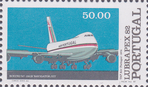 Auf dieser Marke aus Portugal (MiNr 1580) wird eine Boeing 747-282B gezeigt.