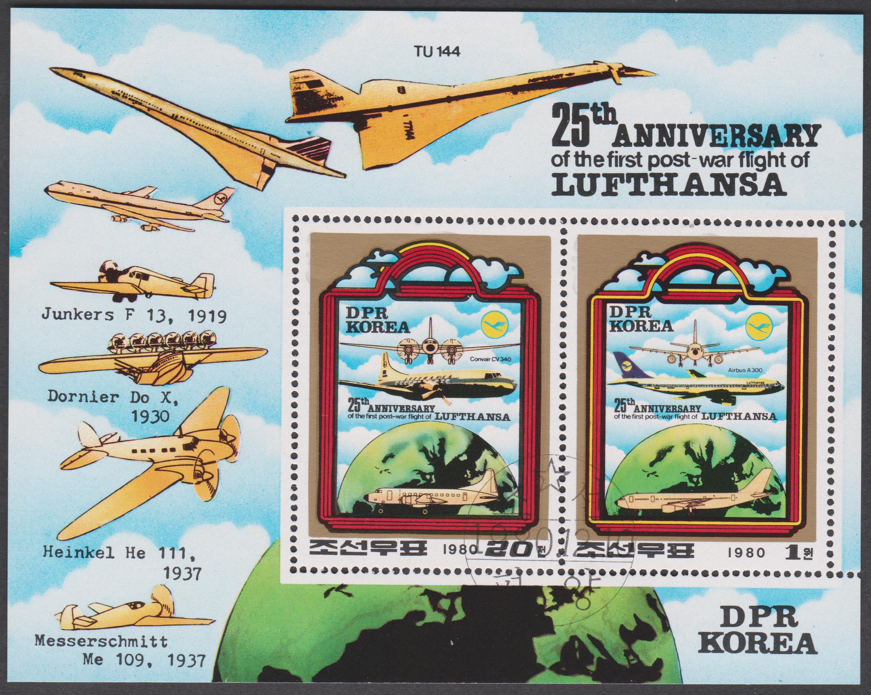 In einer Serie "Verkehrsflugzeuge" ist in Nord-Korea auch eine Marke (MiNr 1788) mit einer Airbus A 300 B2 erschienen.