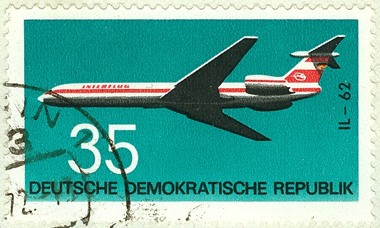 Eine solche Il - 62 zeigt die MiNr. 1751, die am 25. April 1972 als mehrfarbiger 35 Pfennig-Wert innerhalb eines DDR-Satzes "Flugzeuge" erschien.