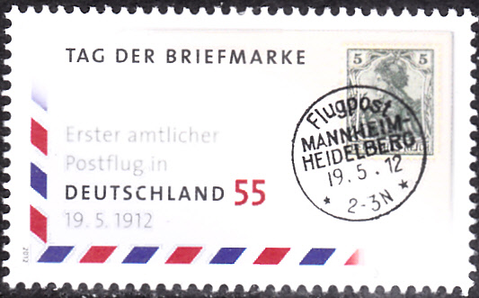 Plusbrief (MiNr USo 250) mit dem Wertstempel "Einfallsreichtum Deutsche Erfindungen" (MiNr 2892) und mit einem Zudruck zum Tag der Briefmarke 2012 und dem Sonderstempel zum Tag der Briefmarke 2012 aus Hamburg.