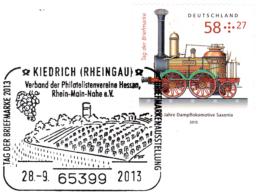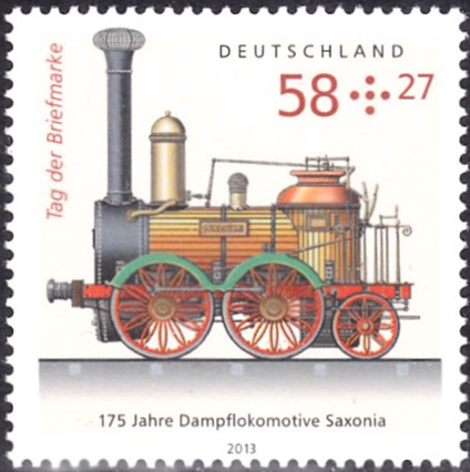 Zum Tag der Briefmarke 2013 ist bei der Deutschen Post am 5.9.2013 eine Marke mit Zuschlag (MiNr 3027) mit der Abbildung der Dampflokomotive "Saxonia" aus dem Jahre 1843 von Johann Andreas Schubert (1808-1870, Ingenieur und Unternehmer).