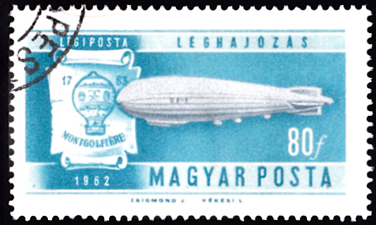 Auf dieser Marke aus Ungarn (MiNr 1849 A) ist im linken Teil der Marke auch eine Montgolfière zu sehen.