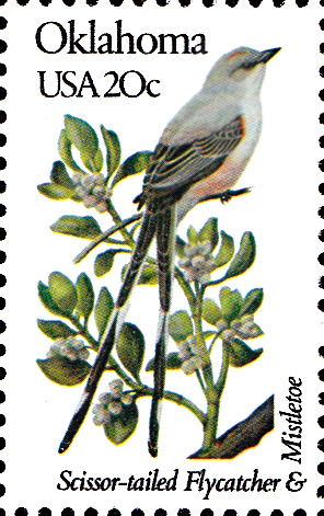 In der Serie "Vögel und Blumen der 50 Bundesstaaten" erschien in den USA eine Marke, (MiNr 1567) die einen Scherenschwanz-Königstyrann (Tyrannus forficatus) zeigt. Im Michel wird er als Scherentyrann (Muscivora forficata) bezeichnet. Die Marke gibt es in zwei Zähnungen: A = gez. K 11 1/4 und F = gez. L 10 3/4:11 1/4.