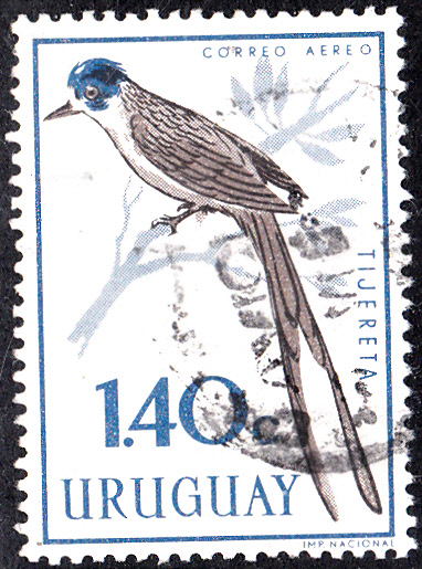 In der gleichen Serie aus Uruguay gibt es eine weitere Marke (MiNr 947) mit einem im Michel mit Gabelschwanztyrann (Muscivora tyrannus) bezeichneten Vogel. Vermutlich handelt es sich um den Gabelschwanz-Königstyrannen (Tyrannus savana) aus der Gattung der Königstyrannen (Tyrannus) in der Familie der Tyrannen (Tyrannidae). Das Männchen erreicht eine Körperlänge, einschließlich Schwanz von etwa 37,0 bis 41,0 Zentimeter und das Weibchen eine Körperlänge, einschließlich Schwanz, von etwa 28,0 bis 30,0 Zentimeter. Das Gewicht beträgt etwa 28,0 bis 32,0 Gramm. Es gibt vier Unterarten. Er kommt in folgenden Ländern vor: Argentinien, Aruba, Belize, Bolivien, Brasilien, Chile, Kolumbien, Costa Rica, Ecuador, Französisch-Guayana, Guatemala, Guyana, Honduras, Mexiko, Niederländische Antillen, Nicaragua, Panama, Paraguay, Peru, Surinam, Trinidad und Tobago, Uruguay und Venezuela.