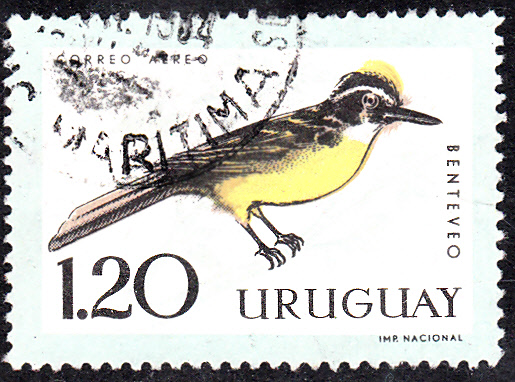 In der gleichen Serie aus Uruguay gibt es eine weitere Marke (MiNr 947) mit einem im Michel mit Gabelschwanztyrann (Muscivora tyrannus) bezeichneten Vogel. Vermutlich handelt es sich um den Gabelschwanz-Königstyrannen (Tyrannus savana) aus der Gattung der Königstyrannen (Tyrannus) in der Familie der Tyrannen (Tyrannidae). Das Männchen erreicht eine Körperlänge, einschließlich Schwanz von etwa 37,0 bis 41,0 Zentimeter und das Weibchen eine Körperlänge, einschließlich Schwanz, von etwa 28,0 bis 30,0 Zentimeter. Das Gewicht beträgt etwa 28,0 bis 32,0 Gramm. Es gibt vier Unterarten. Er kommt in folgenden Ländern vor: Argentinien, Aruba, Belize, Bolivien, Brasilien, Chile, Kolumbien, Costa Rica, Ecuador, Französisch-Guayana, Guatemala, Guyana, Honduras, Mexiko, Niederländische Antillen, Nicaragua, Panama, Paraguay, Peru, Surinam, Trinidad und Tobago, Uruguay und Venezuela.