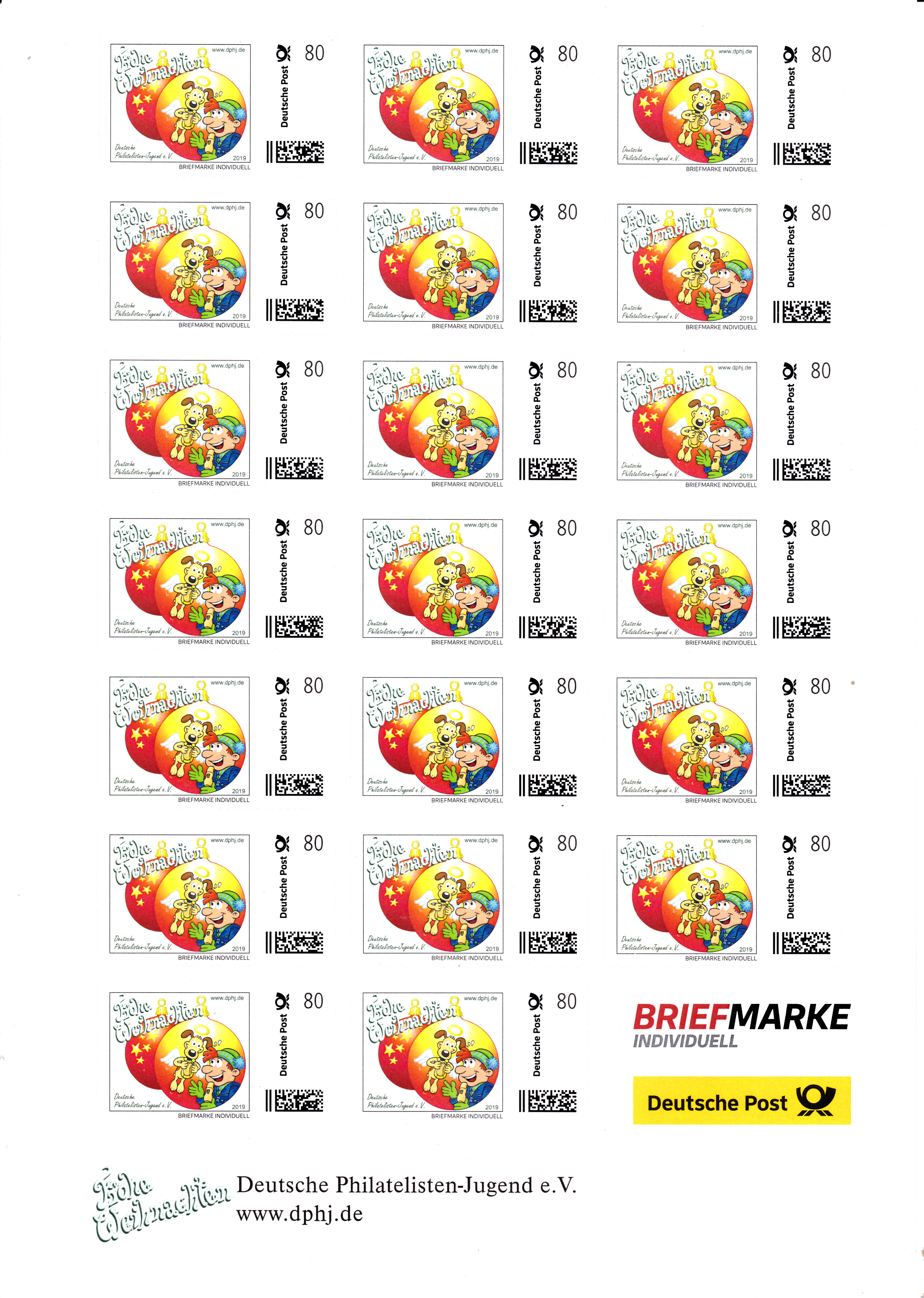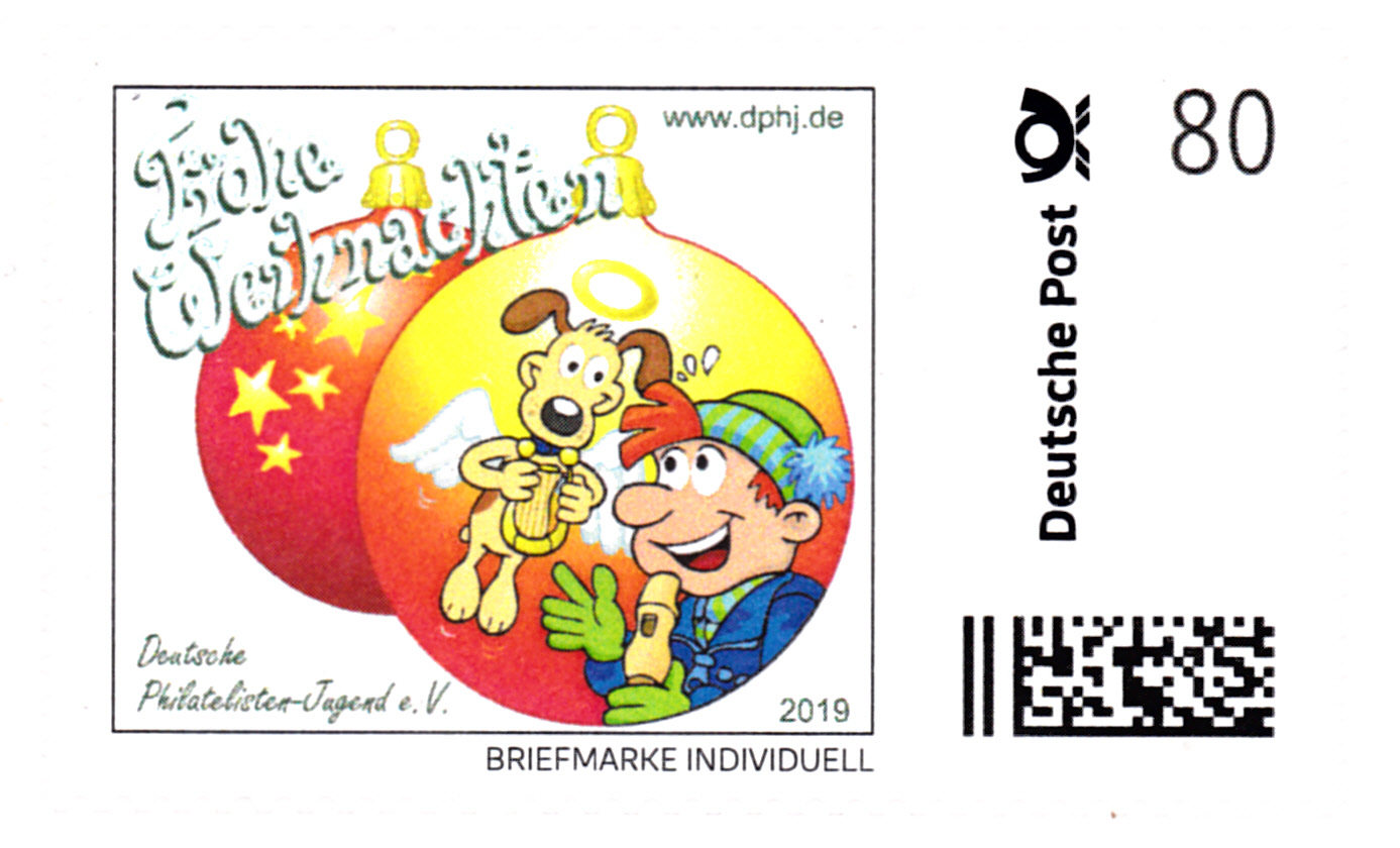 Die Deutsche Philatelisten Jugend e.V. hat 2019 wieder eine Weihnachtsmarke herstellen lassen. Hier zeige ich eine der Marken zu 80 Cent.